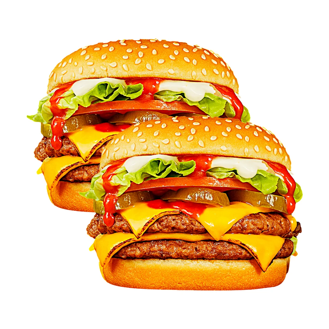 2 T - DUPLO BRABO (Pão gergelim, 2 carnes, queijo cheddar, alface americana, picles, tomate, cebola roxa, ketchup e maionese)
